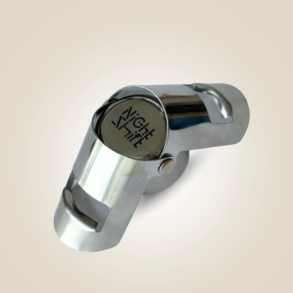 Night Shift logóval ellátott plack lezáró, amit 2025-ös Night Shift széria Magnum (0,75l) palackjaihoz terveztünk.